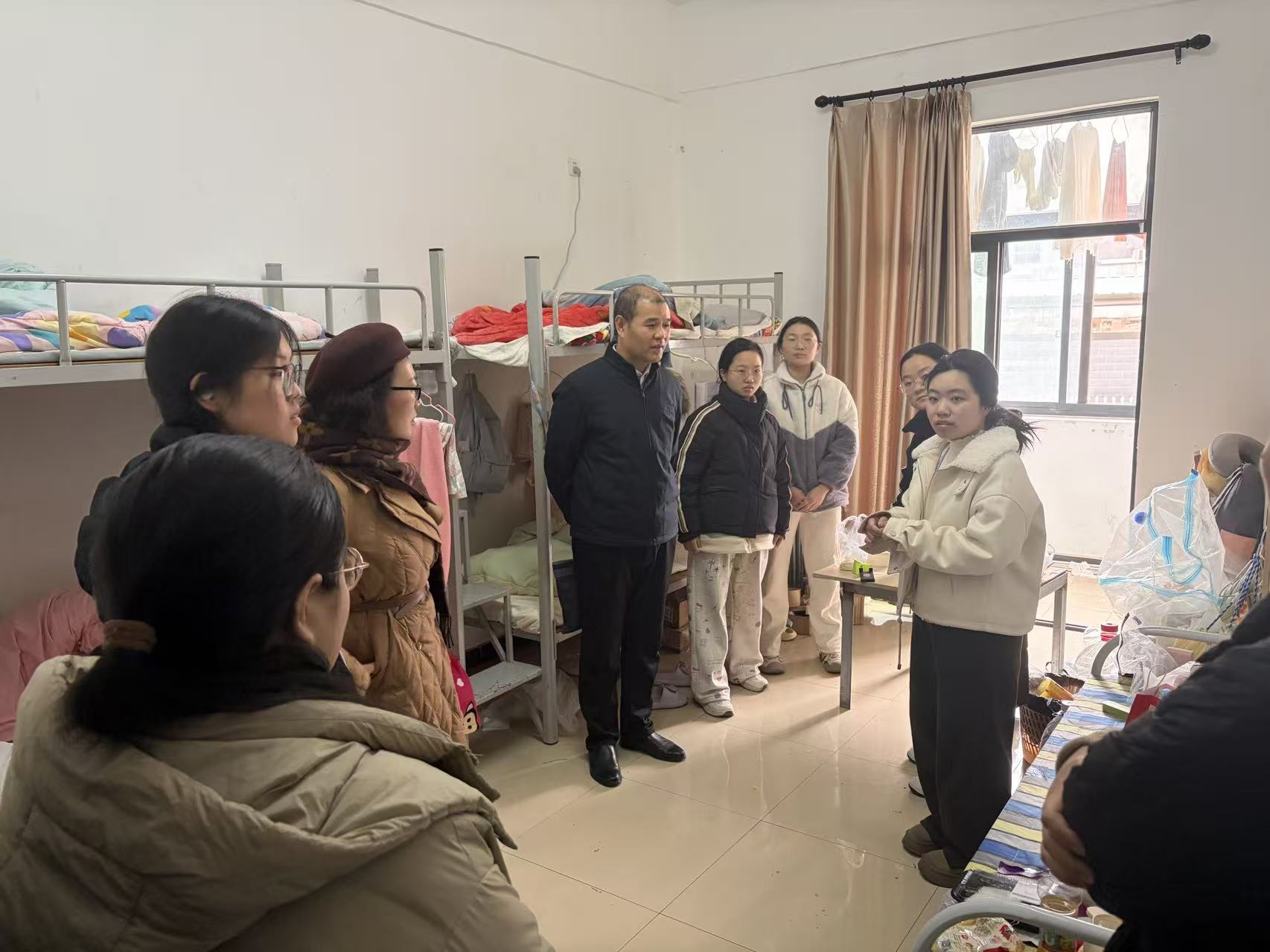 在杭州顶益食品有限公司,检查组参观生产线,了解企业质量管控体系,实地察看学生实操表现,并围绕实习方案优化、校企协同育人模式创新等议题进行交流,达成多项合作共识。学院领导专程走访学生住宿区,细致检查住宿条件、安全保障与后勤服务,慰问学生生活情况,协调企业落实相关保障措施。
