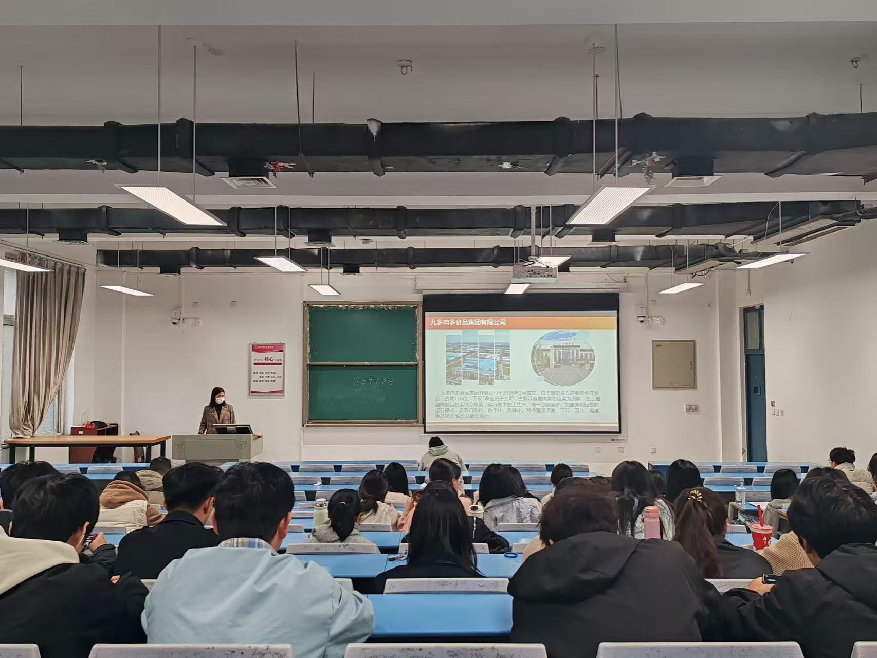 徐涛是青桐(中国)联合创始人,上海火瞪羚品牌定位咨询联合创始人,河南大宝星球餐饮品牌策划联合创始人,CMC国际注册咨询师,河南省工艺美术师。他曾获中国包装联合会“中国40年新锐奖”,并担任中原工学院、河南工业大学、江西科技师范大学研究生校外导师。盖争艳是河南省“技术能手”、新乡市“高技能人才”、河南农业大学食品学院硕士生导师,同时也是九多肉多食品集团有限公司实验室主任。两位专家从产品研发和质量安全控制的角度,为学生们带来了内容丰富、实用性强的专业知识讲座。课程开始前,食品与生物工程学院院长邹建对徐涛进行了介绍,并颁发了校企共建课程特聘专家证书,邹院长表示,邀请行业专家参与教学是食品加工方向人才培养的重要环节,只有不断拓展校企合作的深度和广度,才能为食品行业培养更多优秀专业人才。